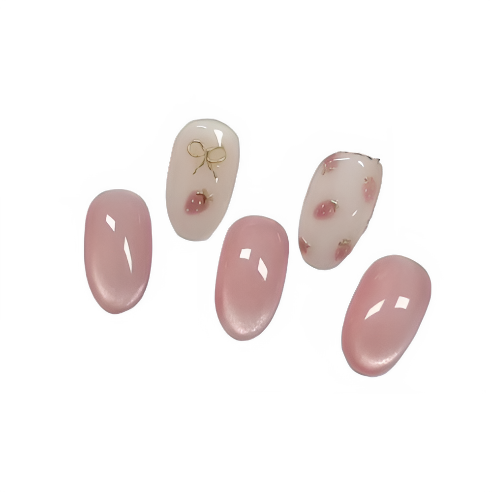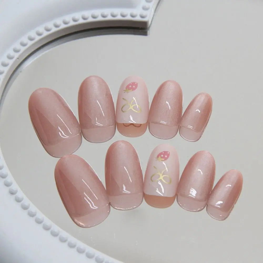 24pcs Oval False Nails French Strawberry Butterfly Cat Eye Press on Nails Fake Nails DIY Manicure Detachable Nail Tips