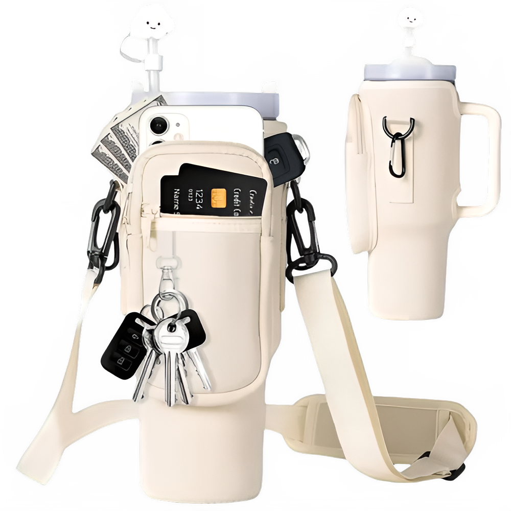 Water Bottle Carrier Bag Adjustable Shoulder Strap Water Bottle Holder Pouch Multi Pockets Water Bottle Sling Bag with Phone Pocket 40oz Cup Accessories