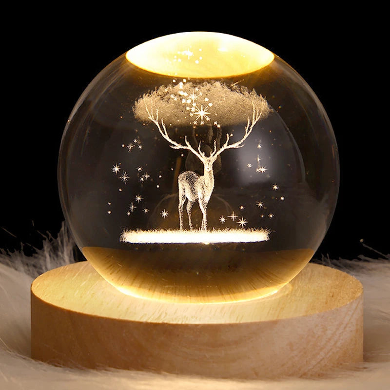 Crystal 3D Lamp Glowing Planetary Galaxy Night Light Crystal Ball Night Light Bedside Light Home Decor Christmas Gift Night Lamp