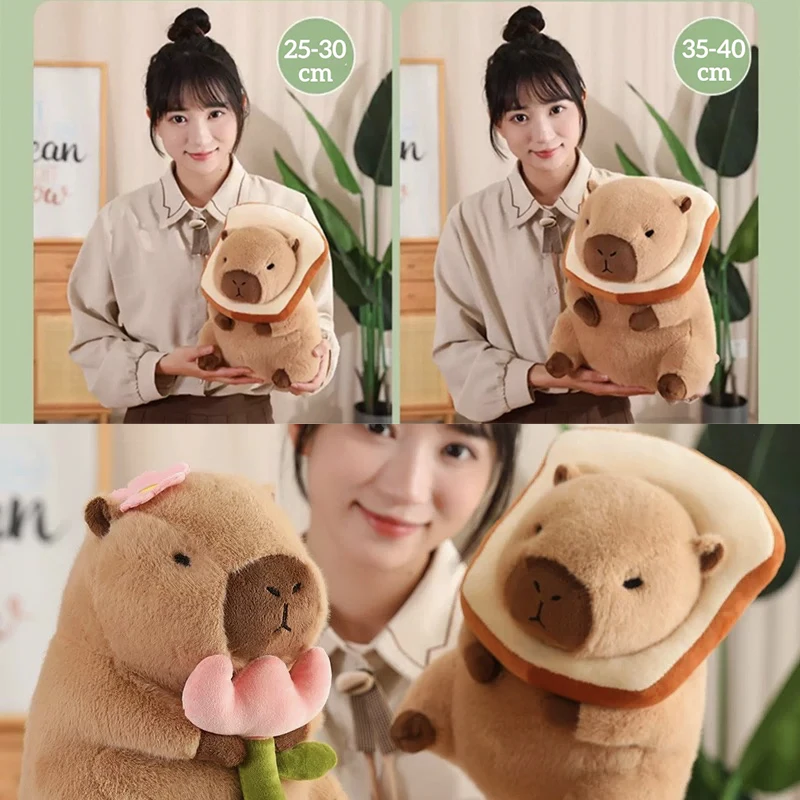 Cute Capybara Plush Doll Cosplay Cartoon Animals Stuffed Flower Ring Bread Capibara Plush Toy for Kids Birthday Xmas Pillow Gift