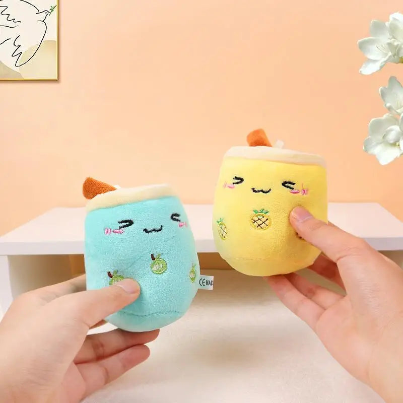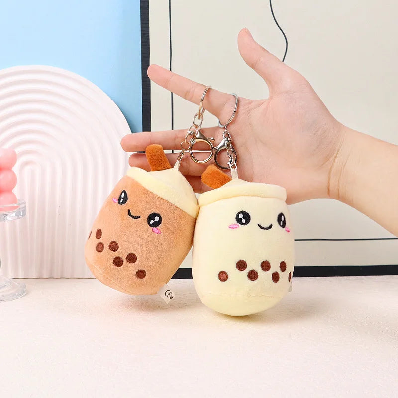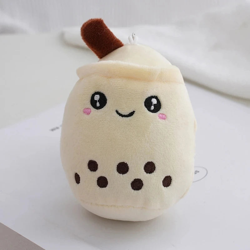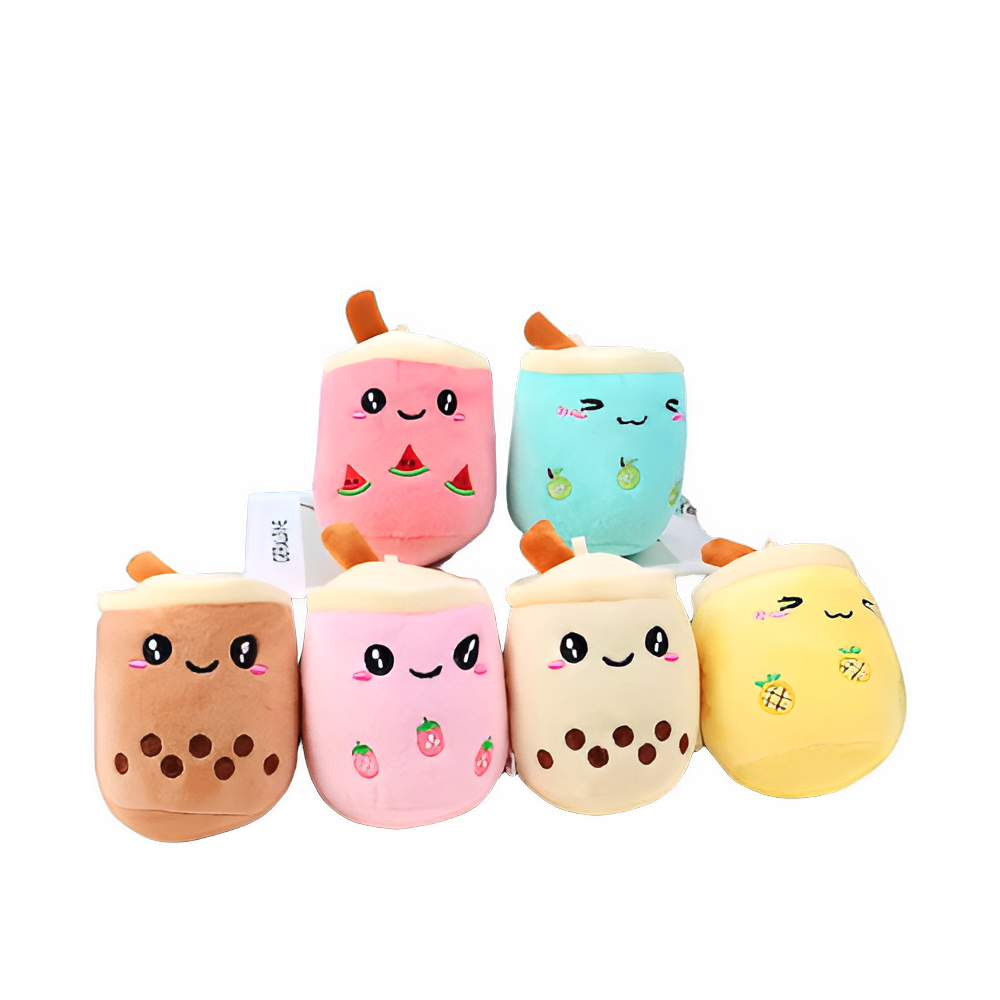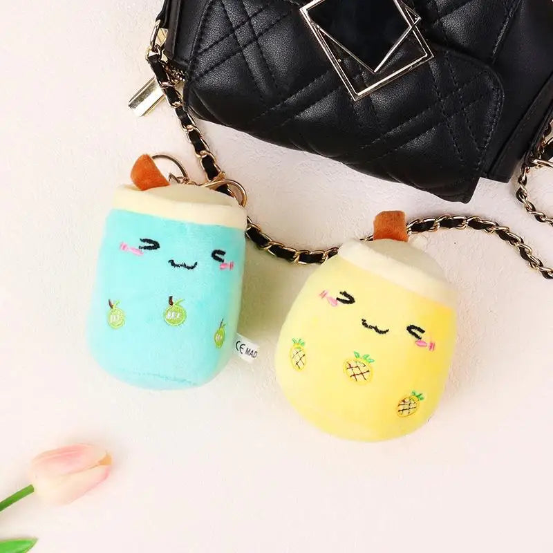 Cute Fruit Milk Bubble Tea Plush Pillow Kawaii Soft Stuffed Plushies Toy with Suction Tube Keychain Backpack Pendant Toys Gifts