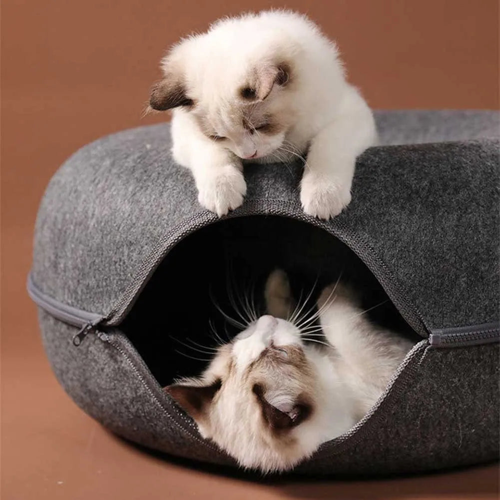 Donut Cat Tunnel Bed Pets House Natural Felt Pet Cat Cave Toys Round Wool Felt Pet Bed For Small Dogs Cat Interactive Play Toys