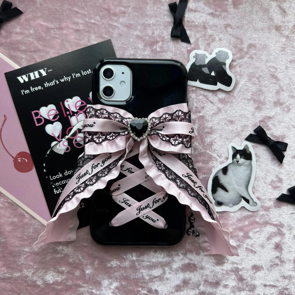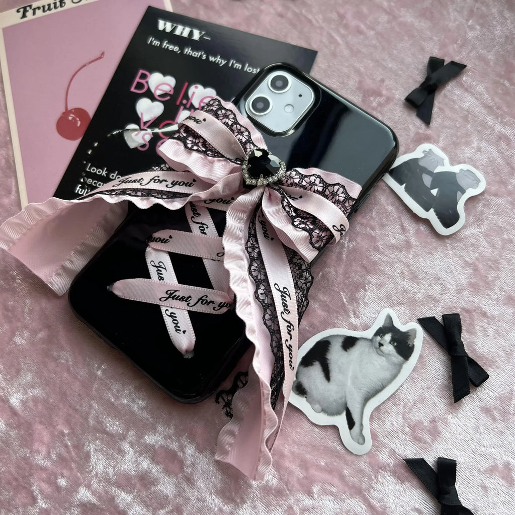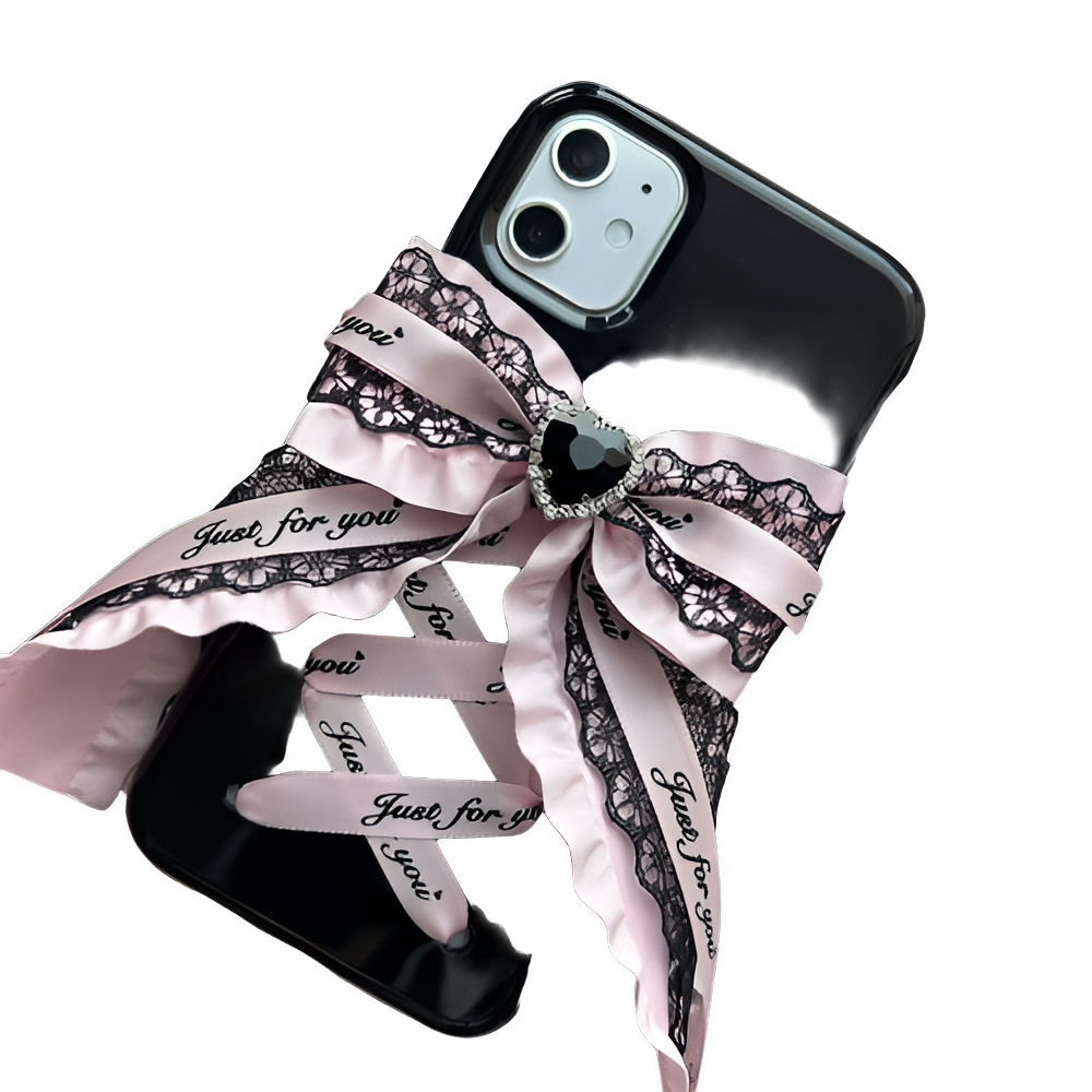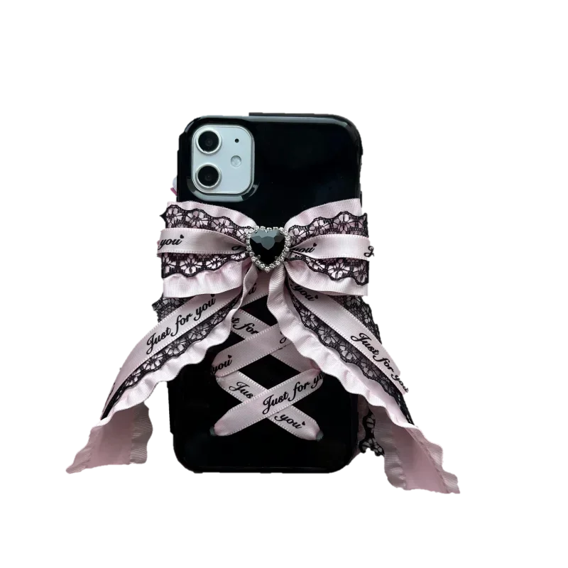 Dophee Original Landmine Series Lolita Bow Young Girl Phone Case Rhinestone Lace Soft Shell Phone Cover IPhone14 15 16Promax