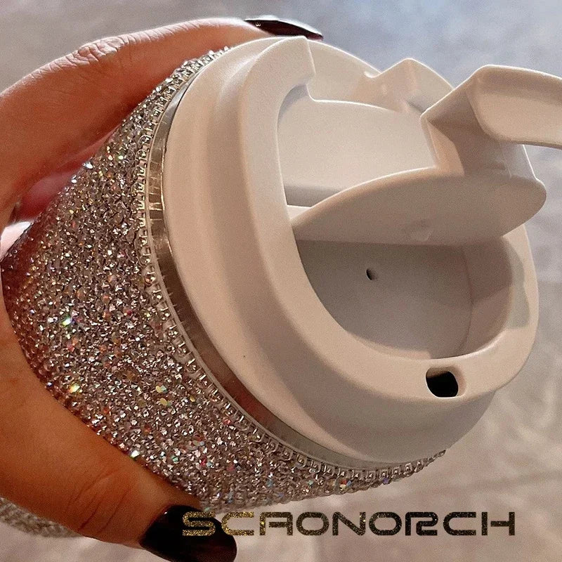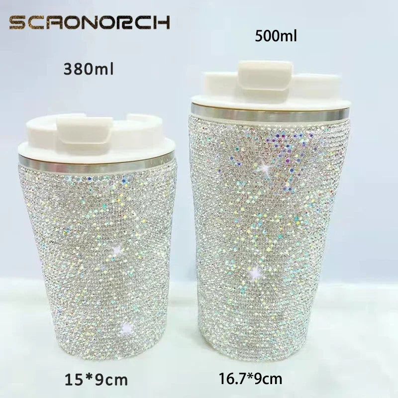 Sparkling Stainless Steel Insulated Crystal Tumbler Coffee Cups Mug Travel Thermal Water Bottle Car Thermos Bottle Vacuum Flask