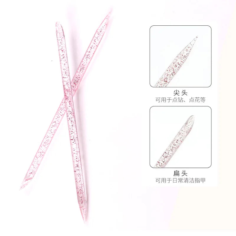 TSZS 1bag Double Side Sticks for Nails Cuticle Pusher Plastic Dotting Pen Manicure Fingernail Care Tools