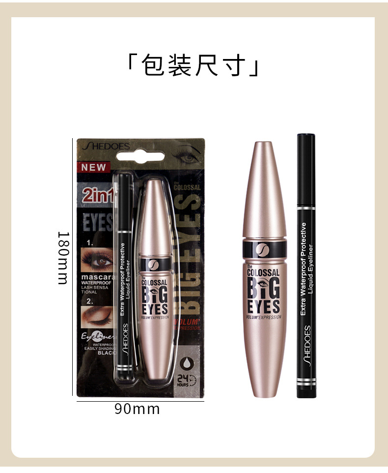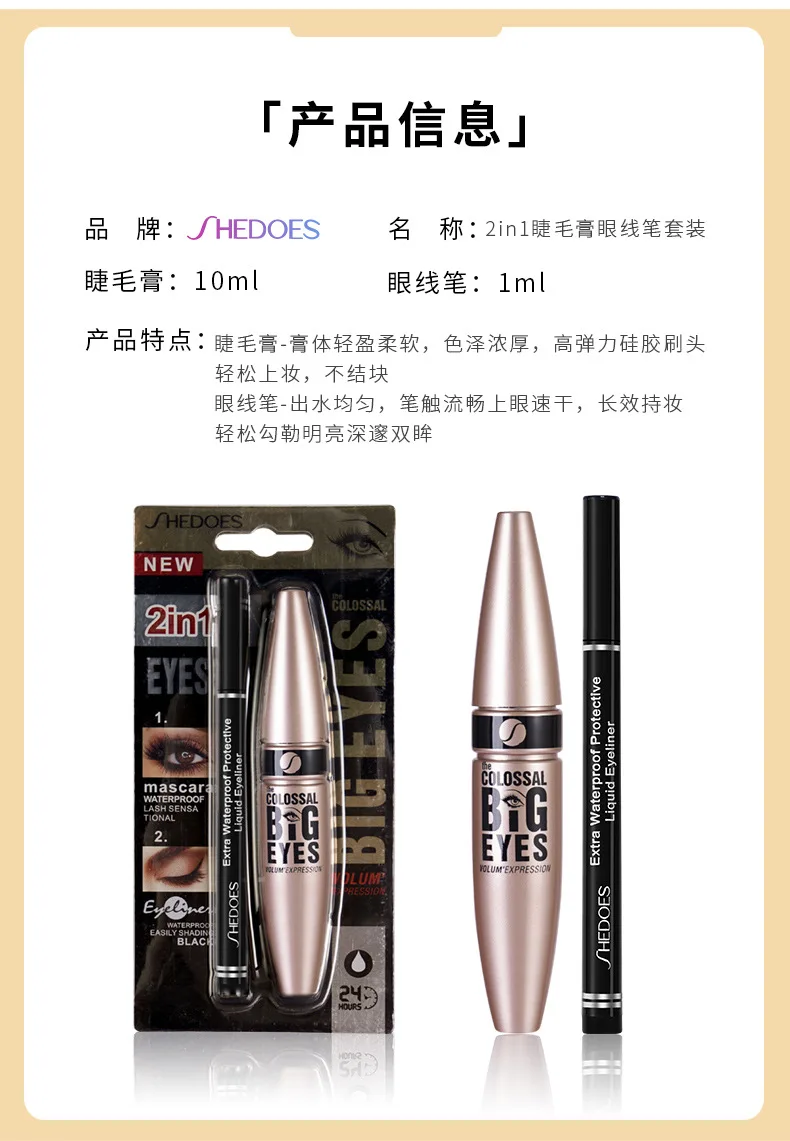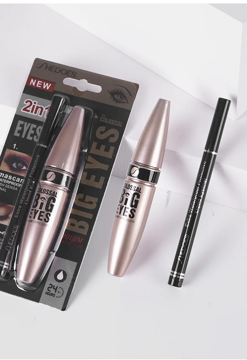 Waterproof Makeup Liquid Mascara Not Easy to Smudge Curing Styling Mascara Eyliner Set