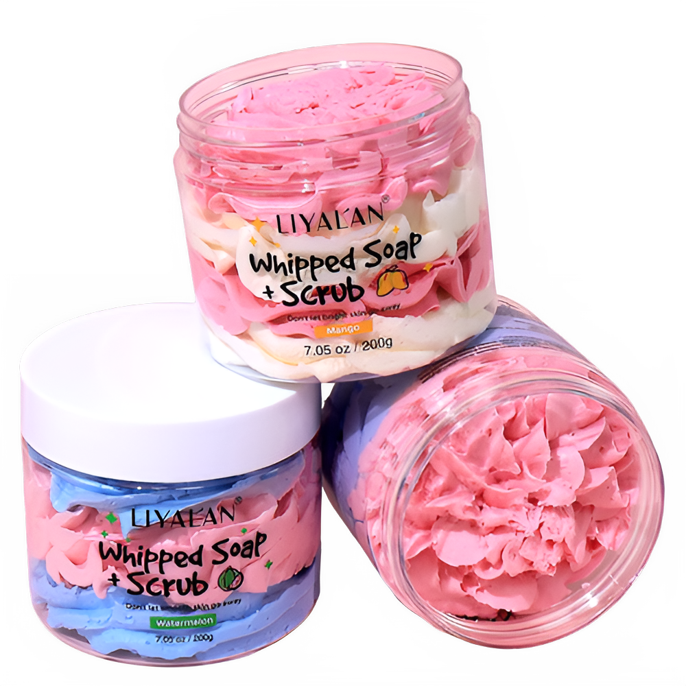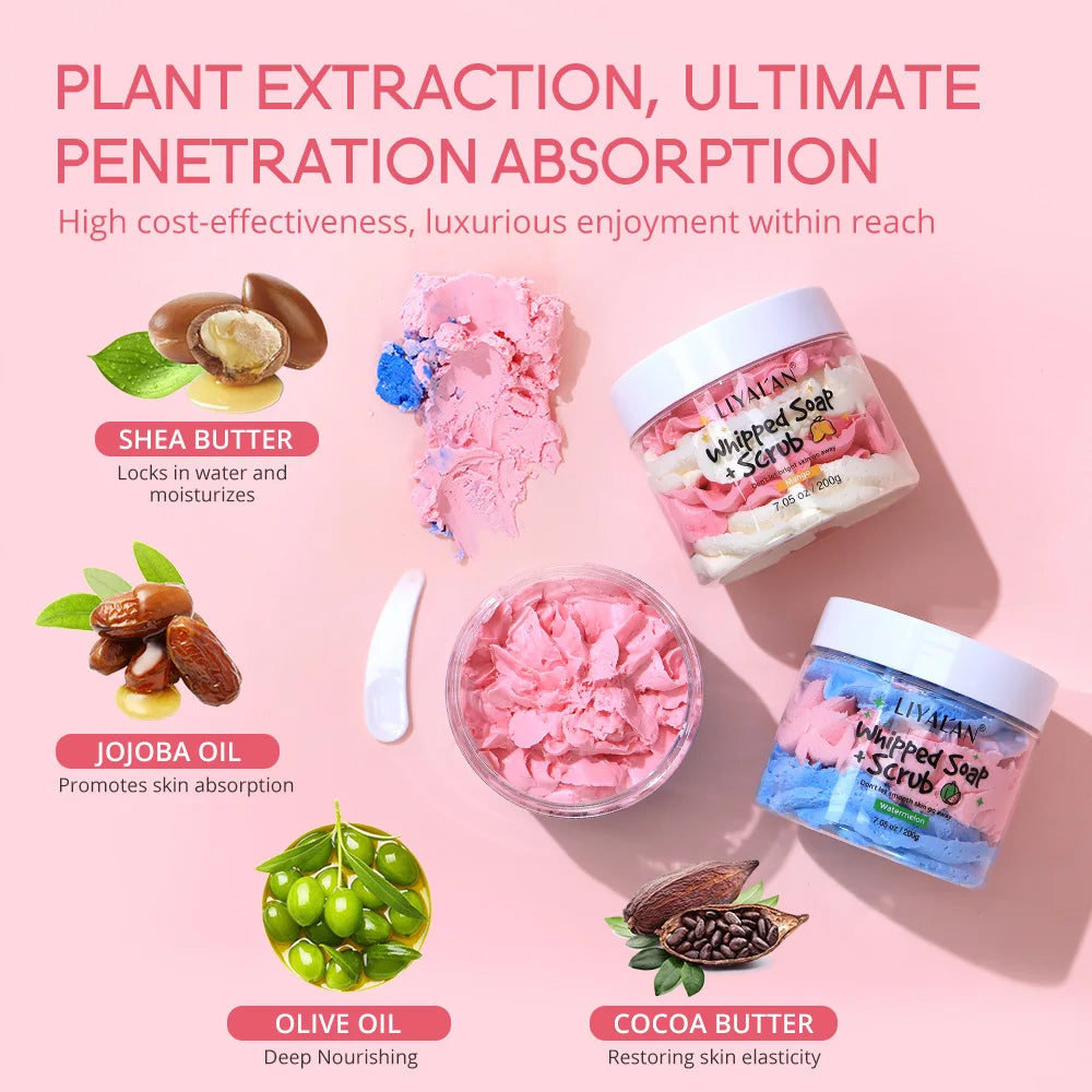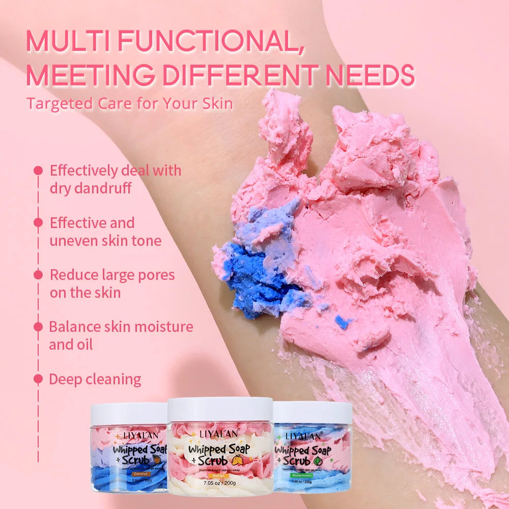 Whipped Soap Bath Cleansing Exfoliating Body Wash Moisturizing Smooth Skin Rainbow Scrub Soften Shave Vegan Handmade Shower Soap