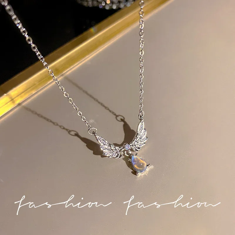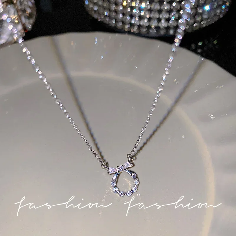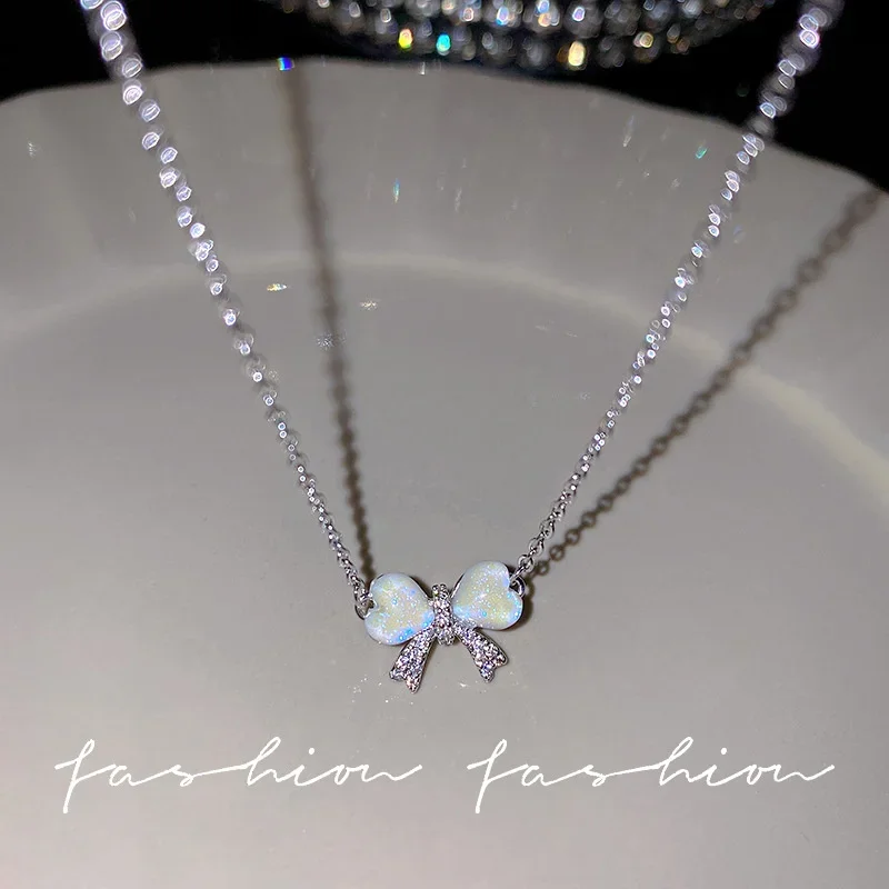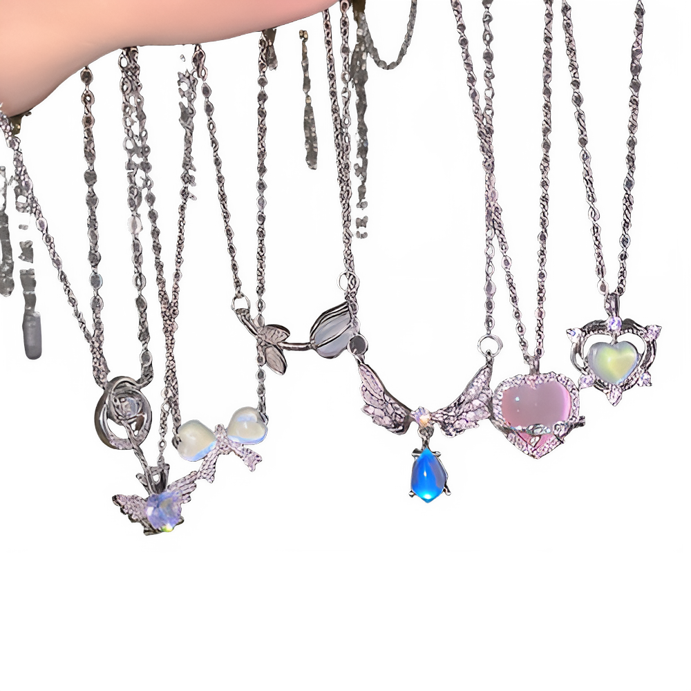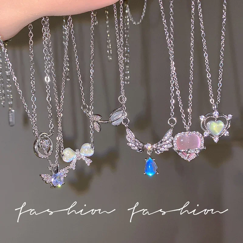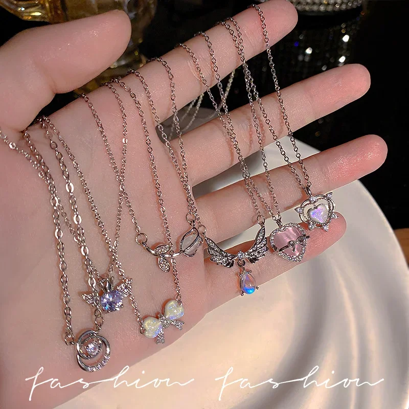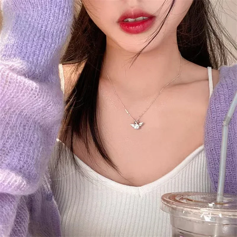 Y2K Crystal Bow Angel Wings Heart Pendant Necklace For Women Sweet Cool Girl Clavicle Chain Trendy Aesthetic Jewelry Accessories